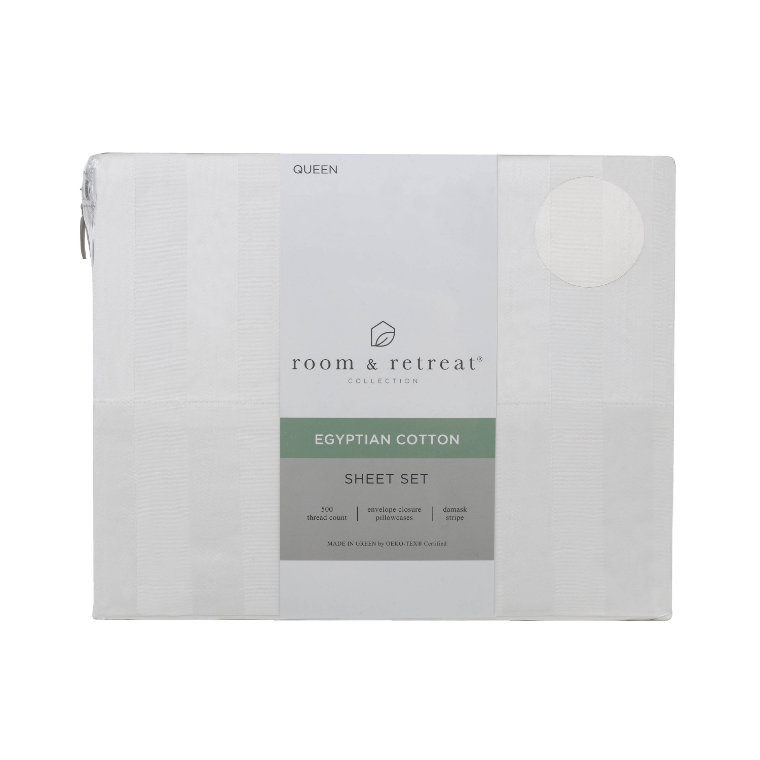 Room & Retreat 500-Thread-Count Egyptian Cotton Damask Sheet Set White Queen