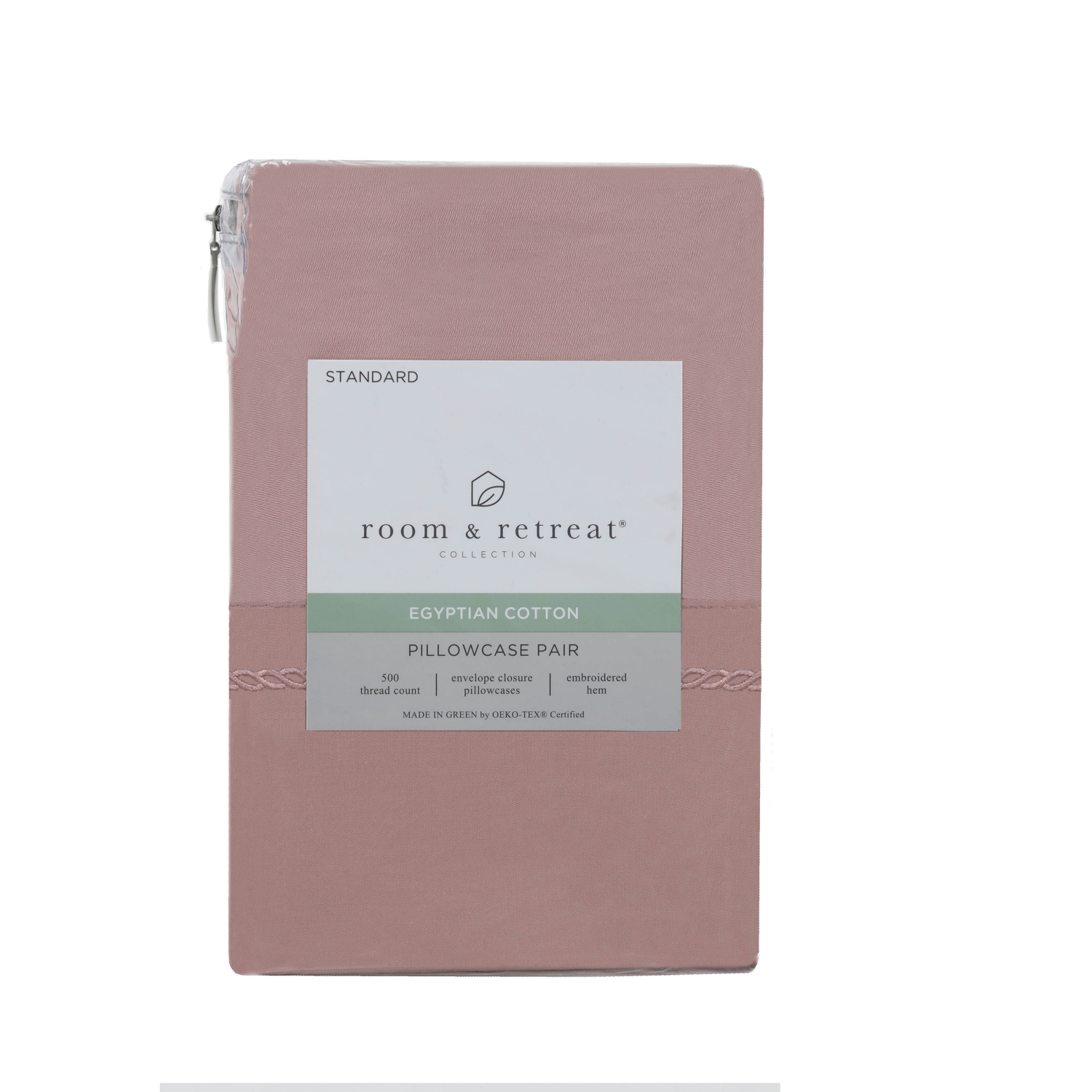 Room & Retreat 500-Thread-Count Egyptian Cotton Solid Pillowcase Blush Standard