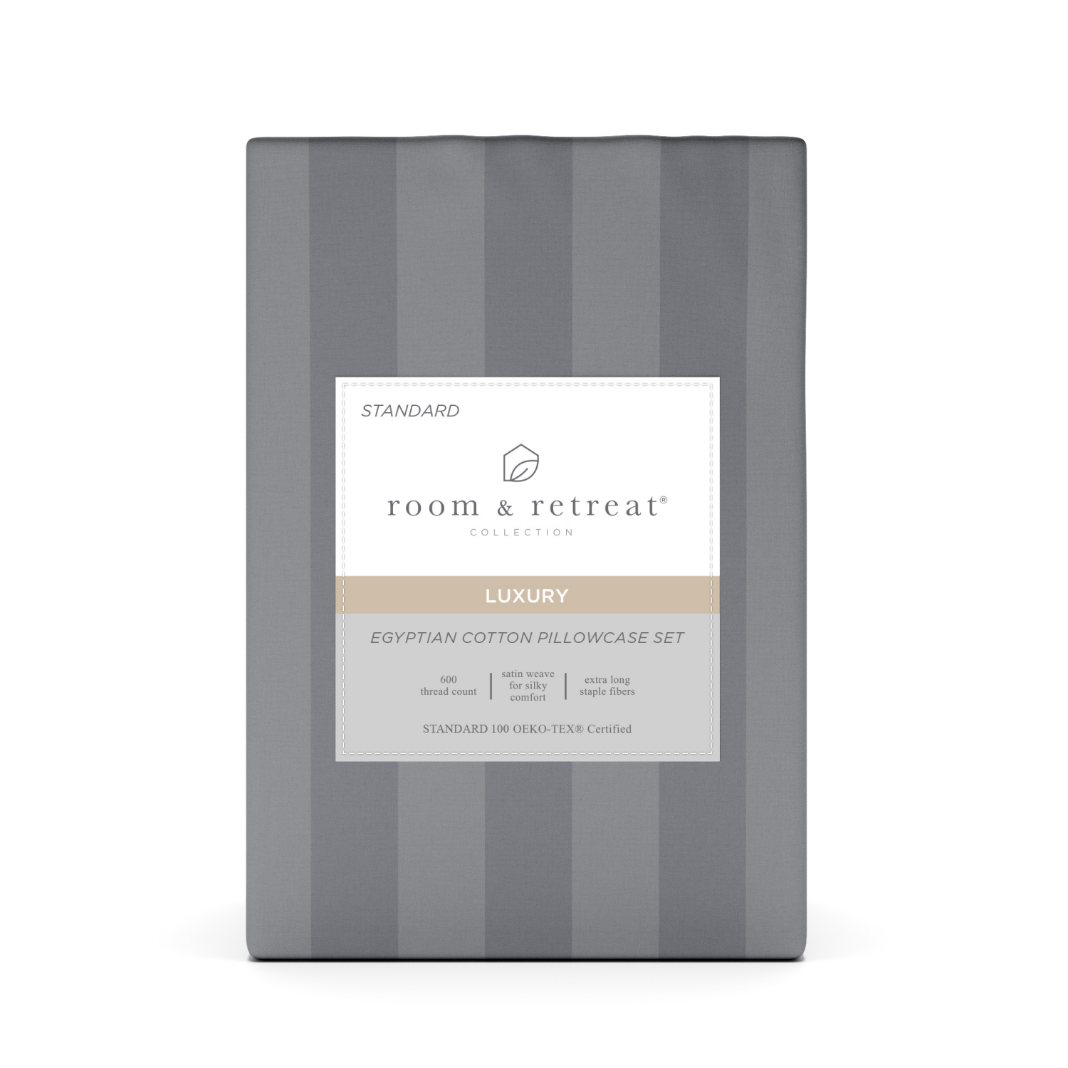 Room & Retreat 600 Thread Counts Damask Pillowcase, Standard, Set of 2, Grey