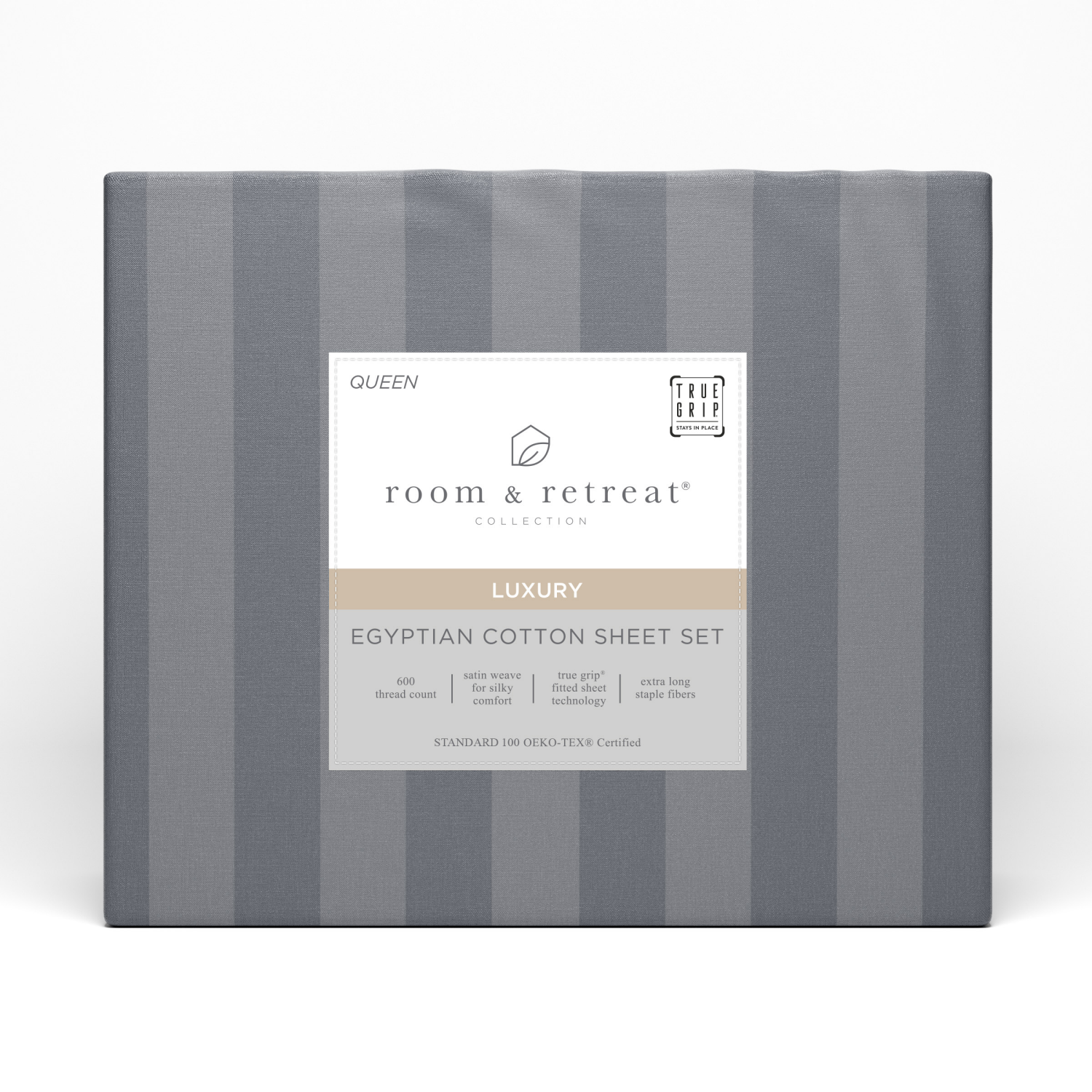 Room & Retreat 600 Thread Counts Damask Sheet Set, Queen, 4 Pieces Set, Grey
