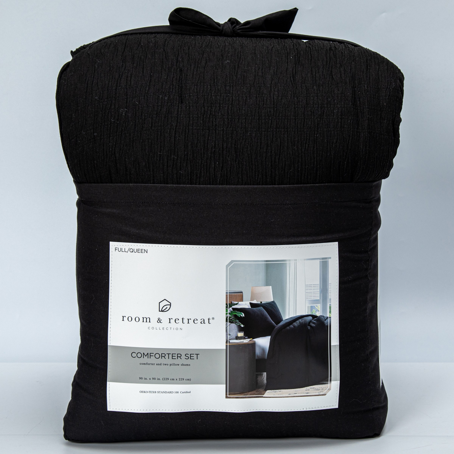Room & Retreat Black Crinkle 3piece Comforter Set Full/Queen