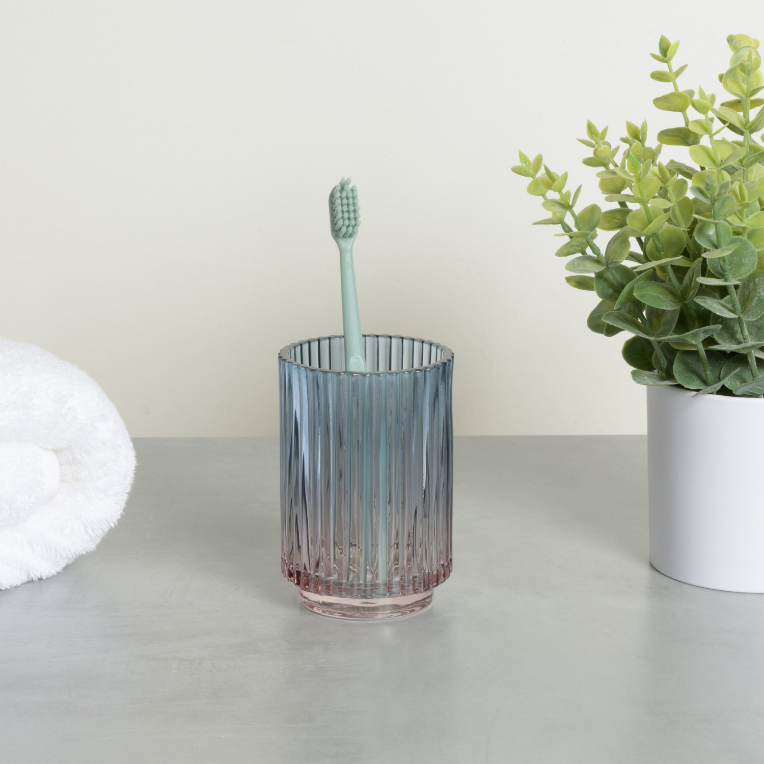 Room & Retreat Golden Era Ombre Tumbler for Countertop Storage, Blue-Pink Ombre