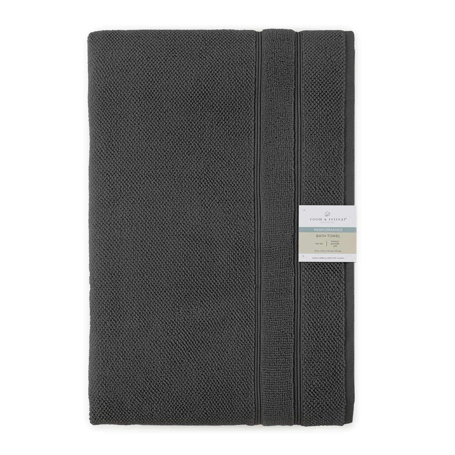 Room & Retreat Performance Textured Bath Towel, 30 in x 56 in, Dark Gray