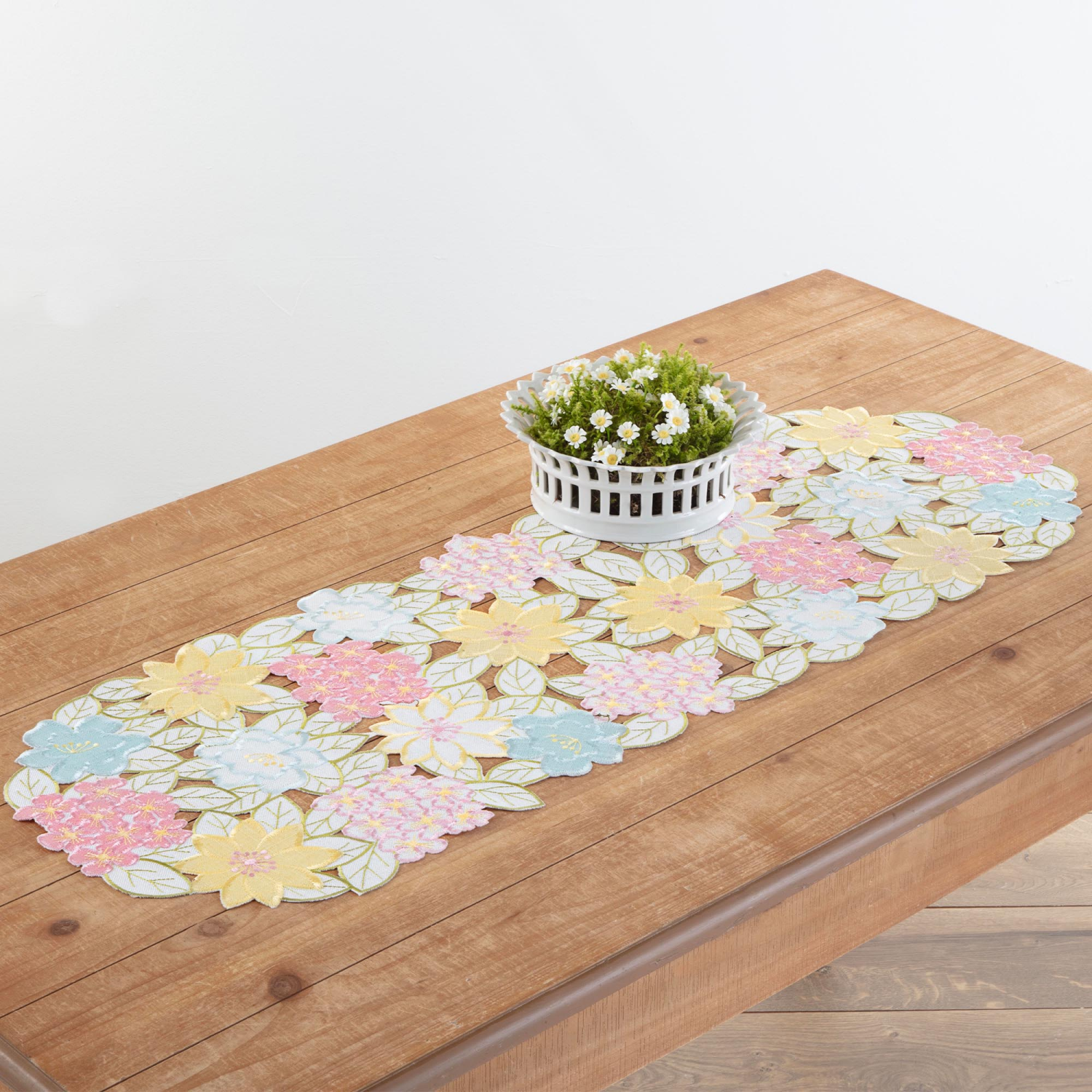 Add a touch of Spring to your table, with the Fresh Florals Centerpiece. This 14 in x 40 in, multi colored, floral centerpiece, will compliment any table. This Spring and Easter motif can be used thro…