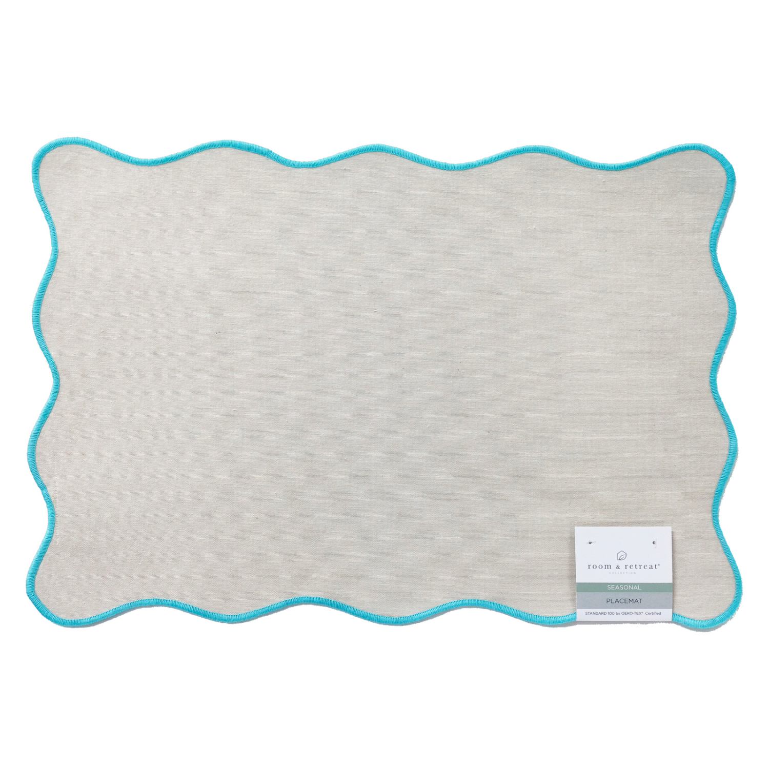 Room & Retreat Samara Scallop Placemat, 13 in x 19 in, Natural With Blue Edge