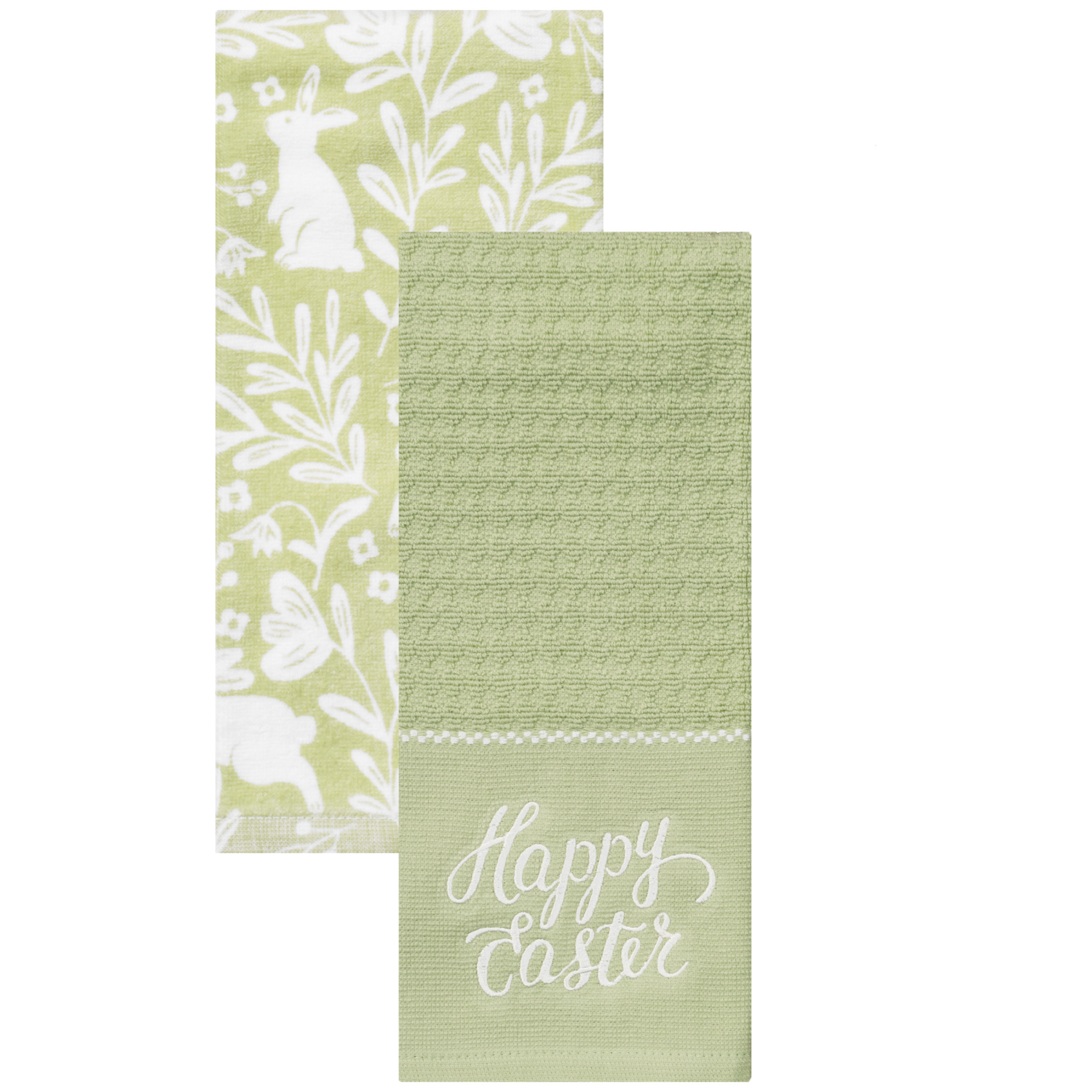 Room & Retreat Seasonal Easter Wishes Tonal Bunnies 2pc Kitchen Towel Set, 16 in x 26 in