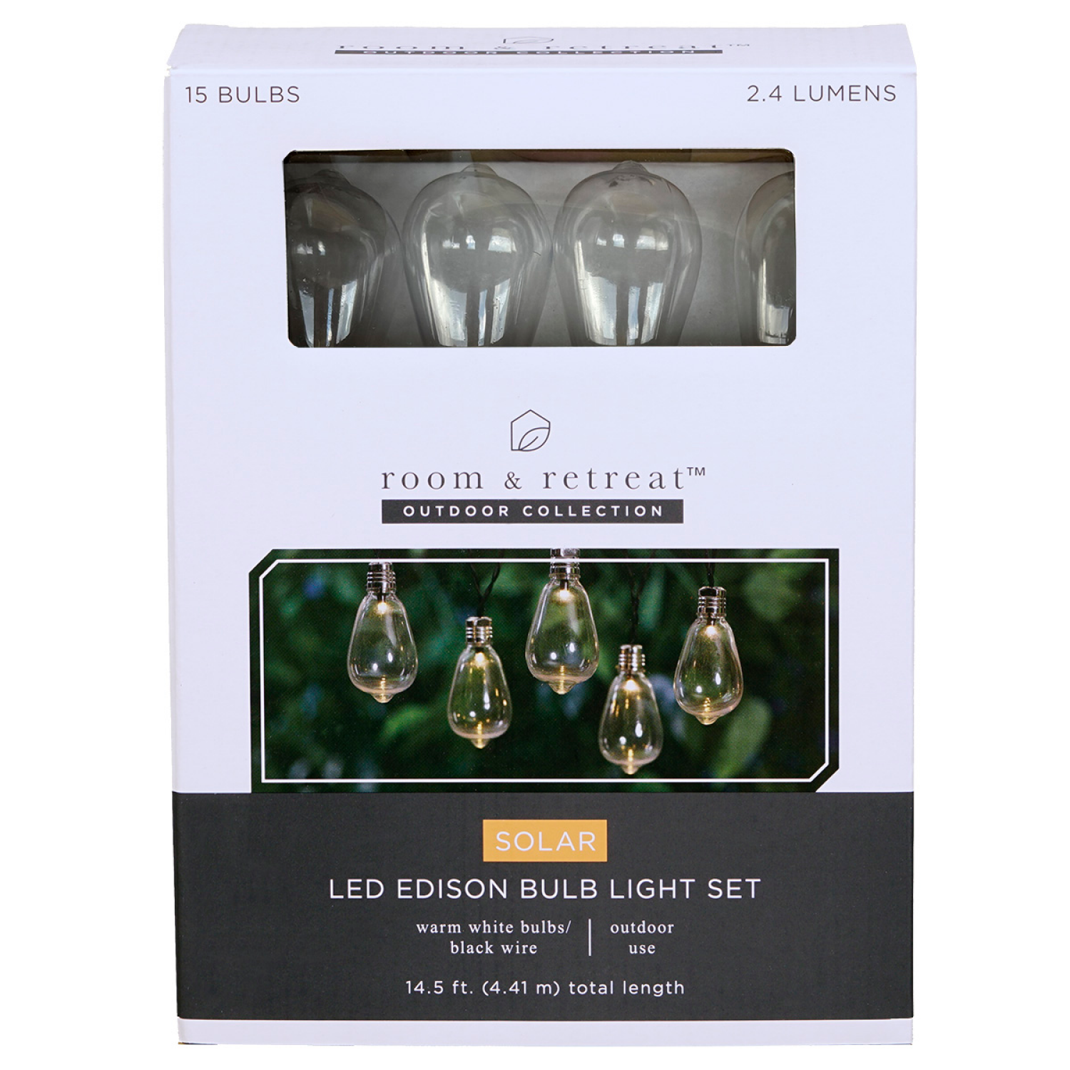 slide 1 of 2, ROOM & RETREAT Solar LED Edison Lights, 15 ct