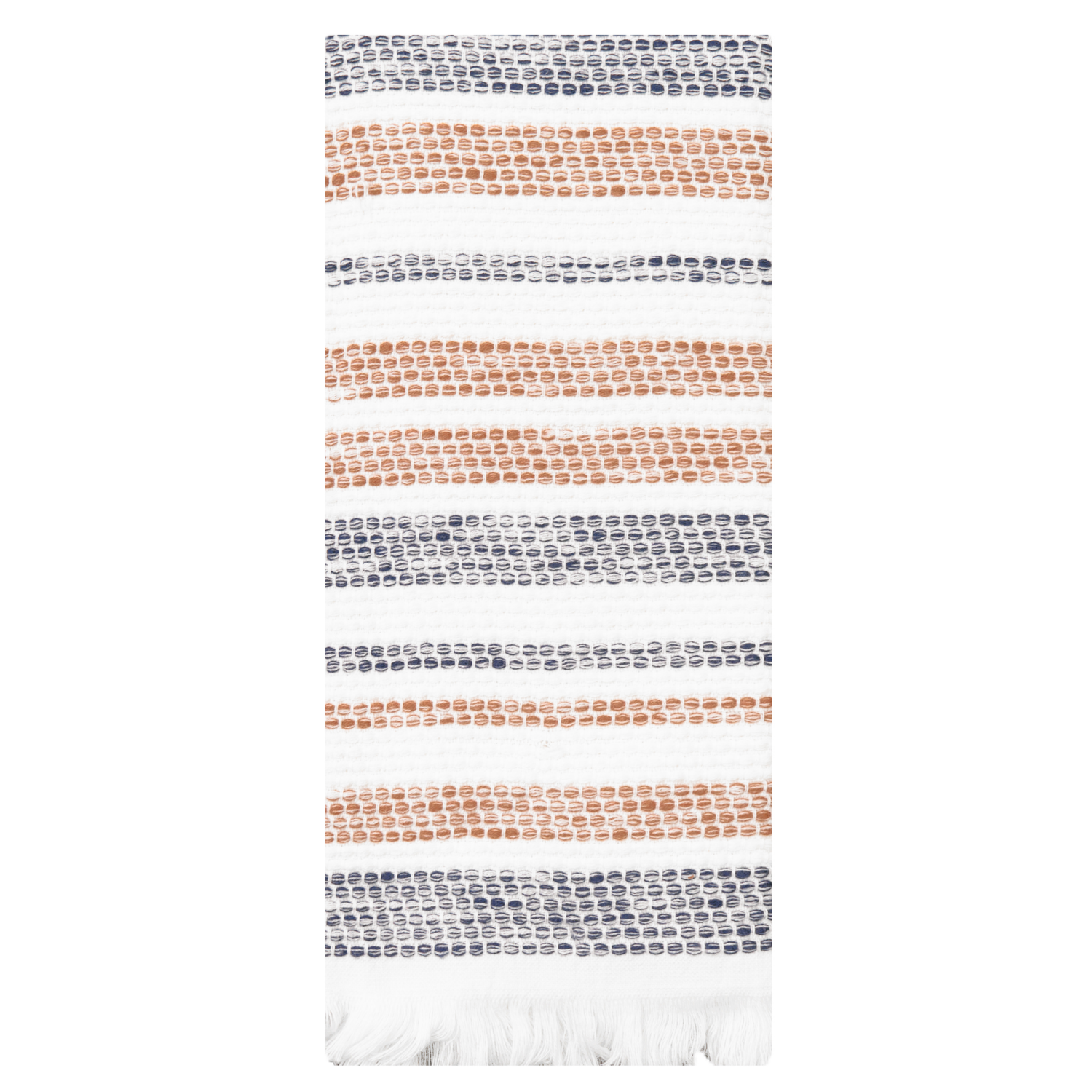 Room & Retreat Textured Stripe Midnight & Copper Kitchen Towel with Fringe, 16 in x 26 in