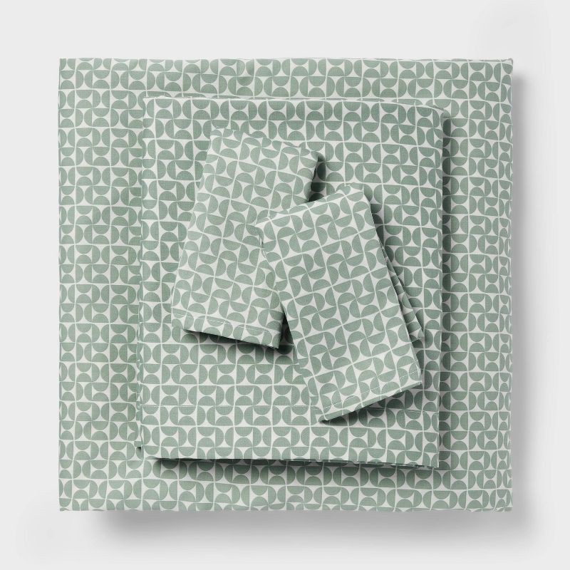 Full Cotton Blend Sateen Sheet Set Green Geo - Room Essentials™