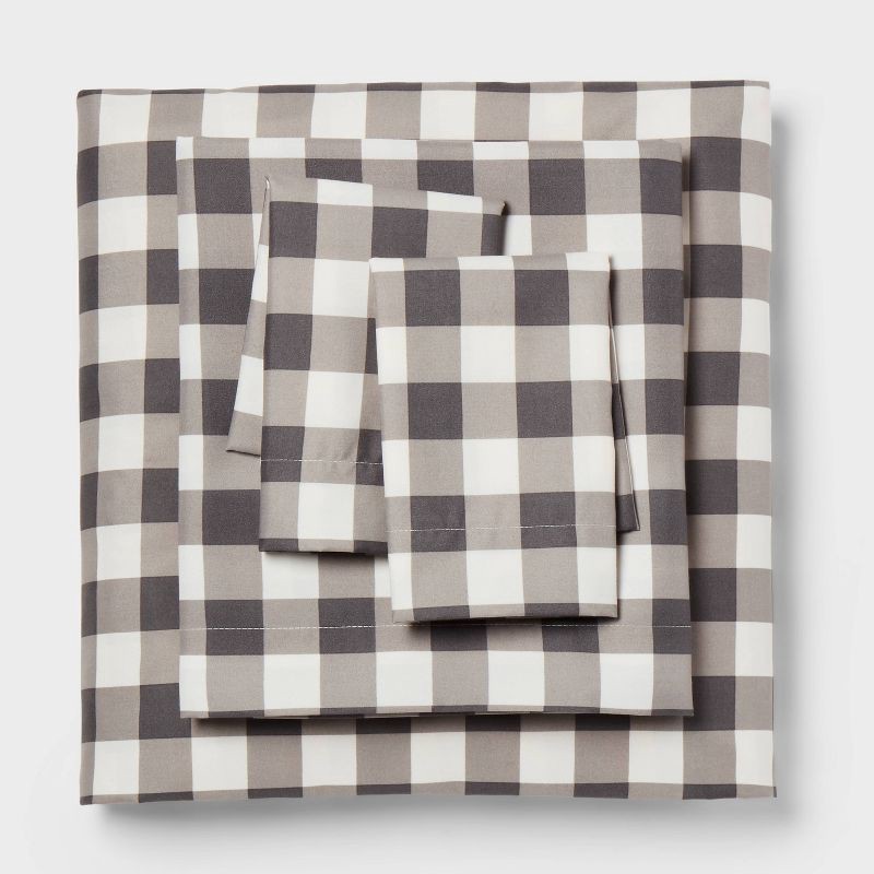 Full Microfiber Sheet Set Gray Plaid - Room Essentials™