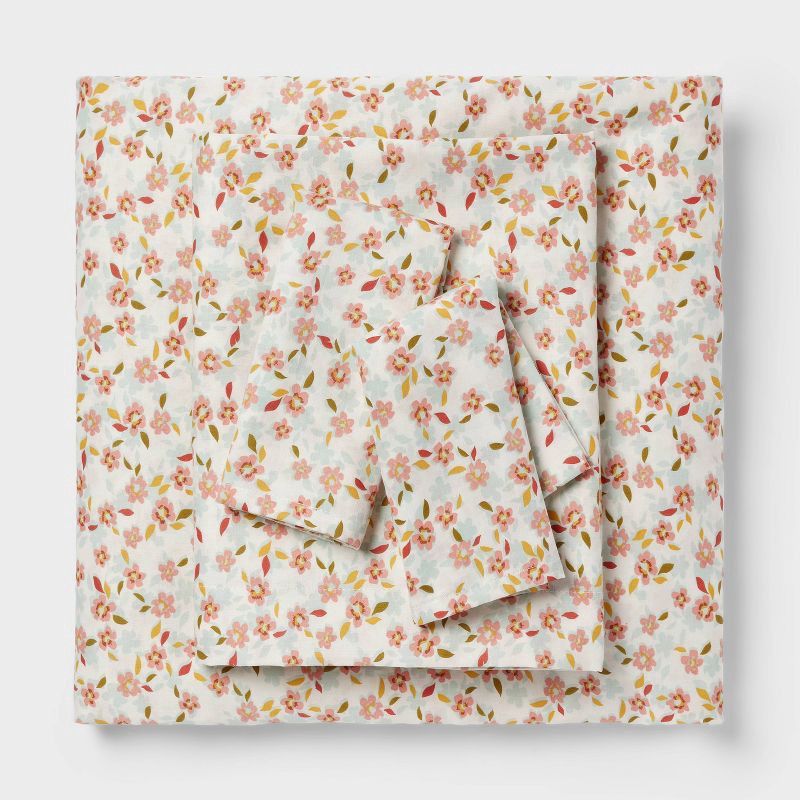 King Cotton Blend Sateen Sheet Set Pink Floral - Room Essentials™