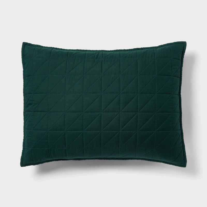 Add an elegant finishing touch to your bedding with this Standard Microfiber Quilt Pillow Sham from Room Essentials™. This standard-size sham showcases a microfiber front featuring diamond-stitched qu…