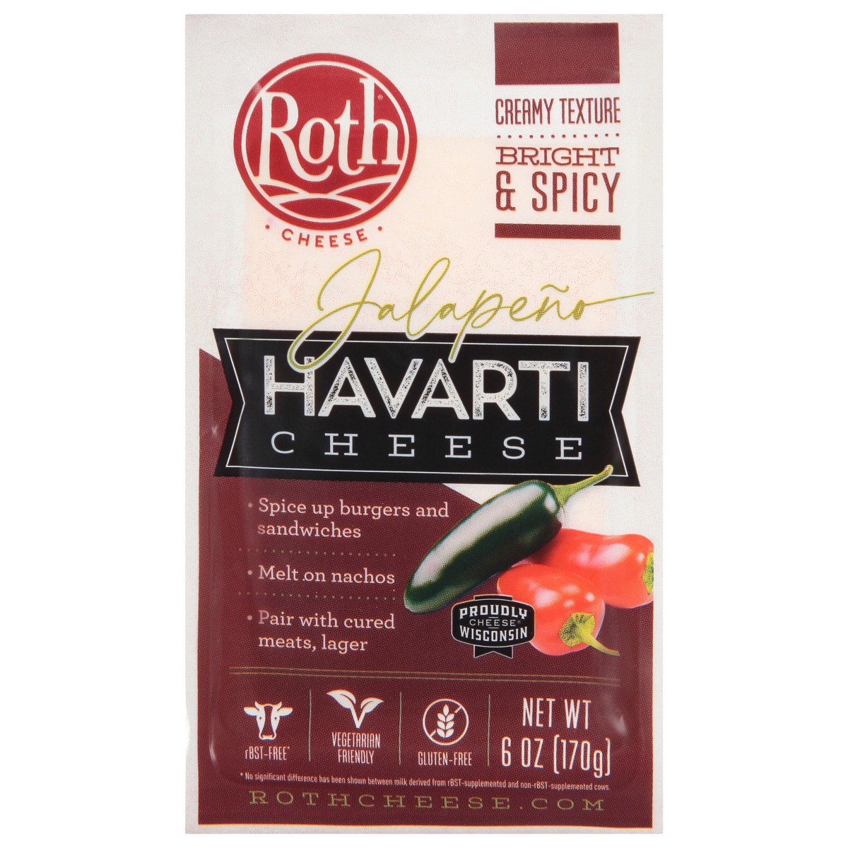 Roth jalapeño havarti 6 oz is made with the freshest Wisconsin milk and traditional methods of danish cheese making. This spicy and creamy cheese is delicious for snacking or cooking. Try spicing up y…