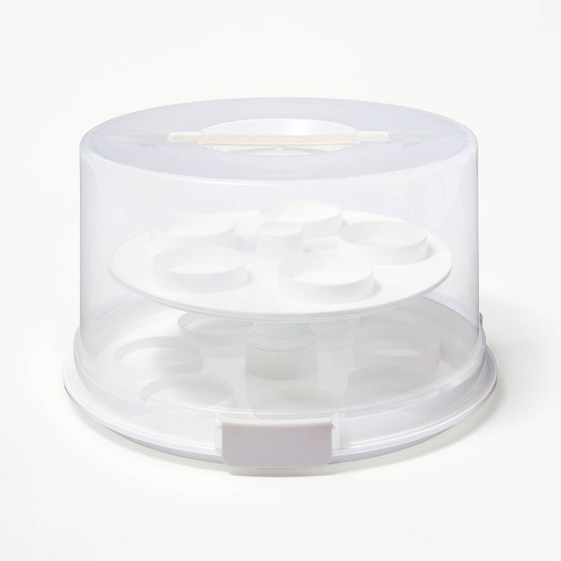 Round Cake Carrier White/Clear - Figmint™: 23.5 Volume, Polypropylene, Hand Wash, Food Carrier, 3 Pieces