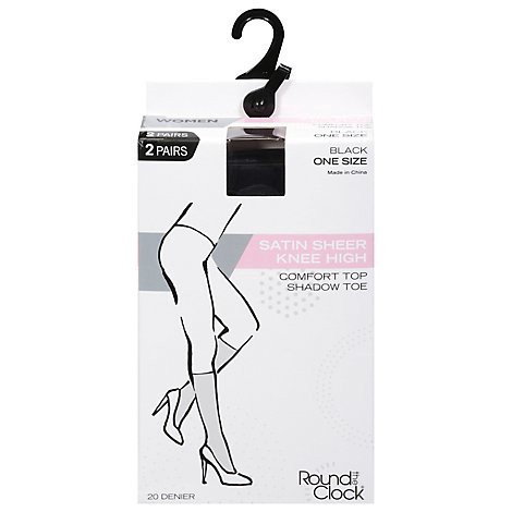 Round the Clock Black Satin Sheer Knee High One Size 2 ea