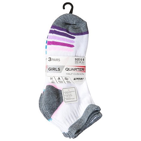 slide 1 of 1, Round the Clock Girls Quarter Half Cushion Socks Size 6-8 3 ea, 1 ct