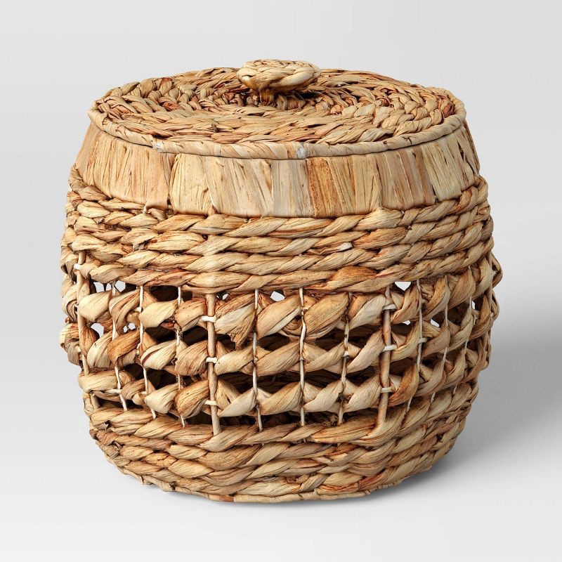 Decorate your home in a textured style with the Round Water Hyacinth Basket with Lid from Threshold™. This round basket is made of water hyacinth and features a woven design that adds natural charm an…