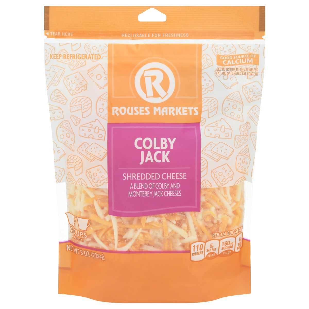 Colby Cheese (Cultured Pasteurized Milk, Salt, Enzymes, Annatto [Vegetable Color]), Monterey Jack Cheese (Cultured Pasteurized Milk, Salt, Enzymes), Anti-Caking Blend (Potato Starch, Tapioca Starch, N…