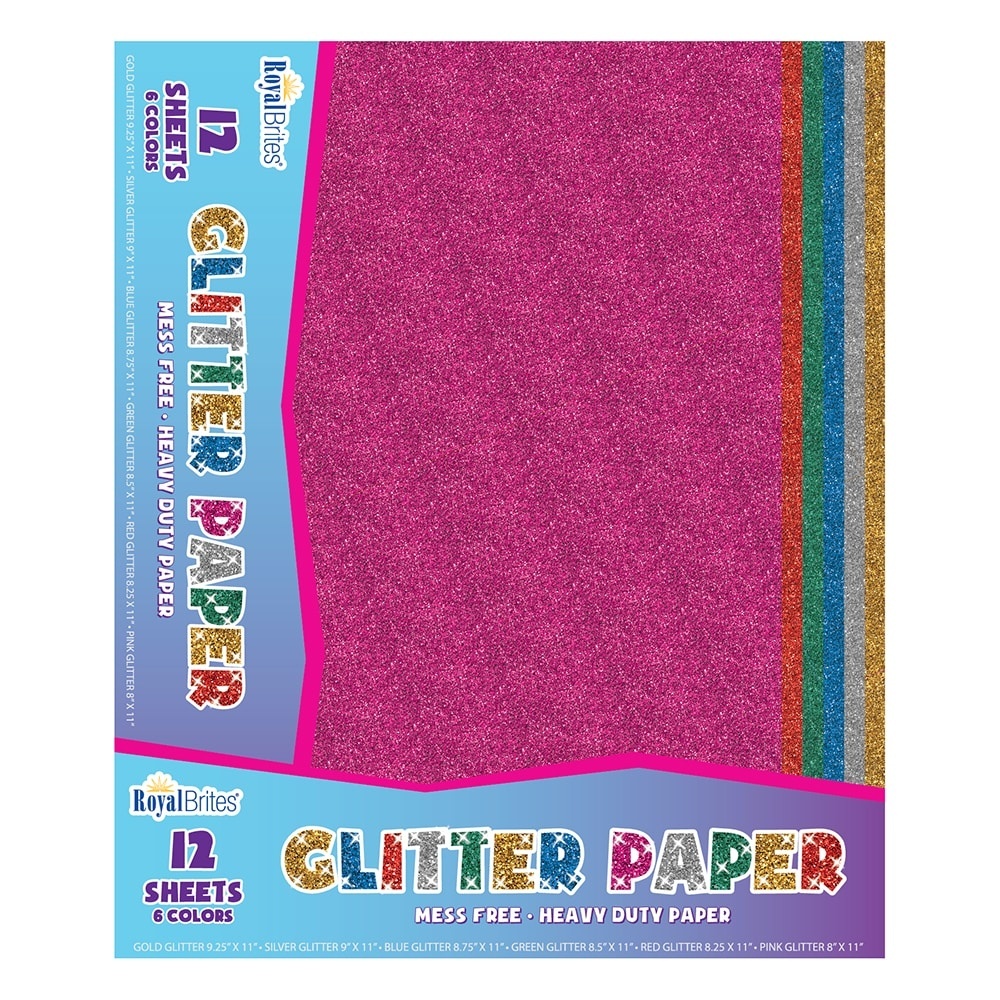 Royal Brites Glitter Paper Assorted Colors, 9.25" x 11" is perfect for decorations, backgrounds, card making, stencil cut-outs, arts and crafts and more. Each pack includes 6 fun sparkly colors. Premiā¦
