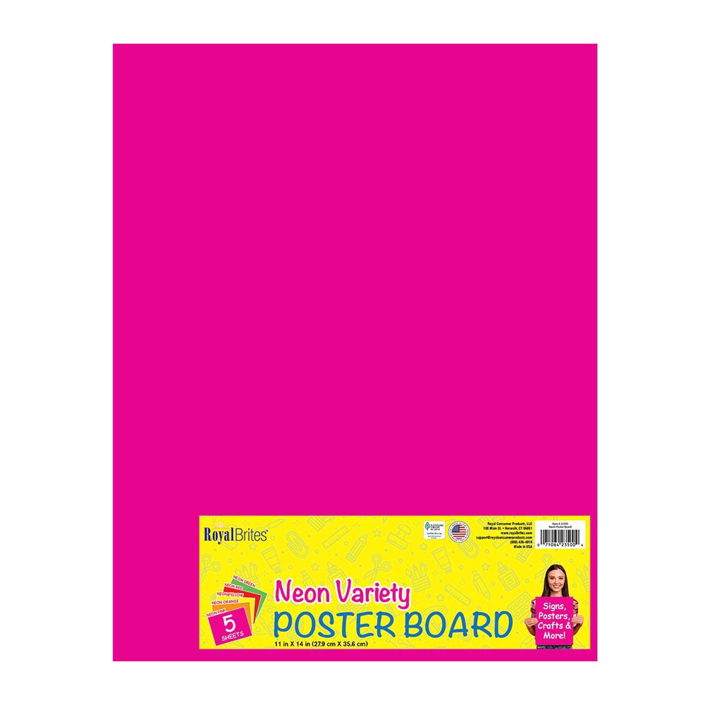 Royal Brites Neon poster board paper has a quality coating, for a professional look and feel. The smooth finish provides bright color and is UV and water resistant.