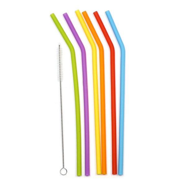 A set of six bent silicone straws with a cleaning brush. Use for smoothies, bubble tea, ice cream floats and other frozen drinks. Reduce plastic waste and save money with our reusable drink straws. Be…