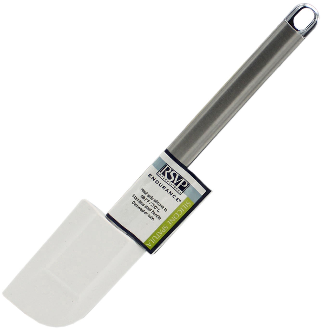 Stainless steel handle with a flexible silicone spatula head. The flexible head with curve to the contour of any bowl with ease. Stainless steel handle adds durability that similar spatulas lack. Heat…