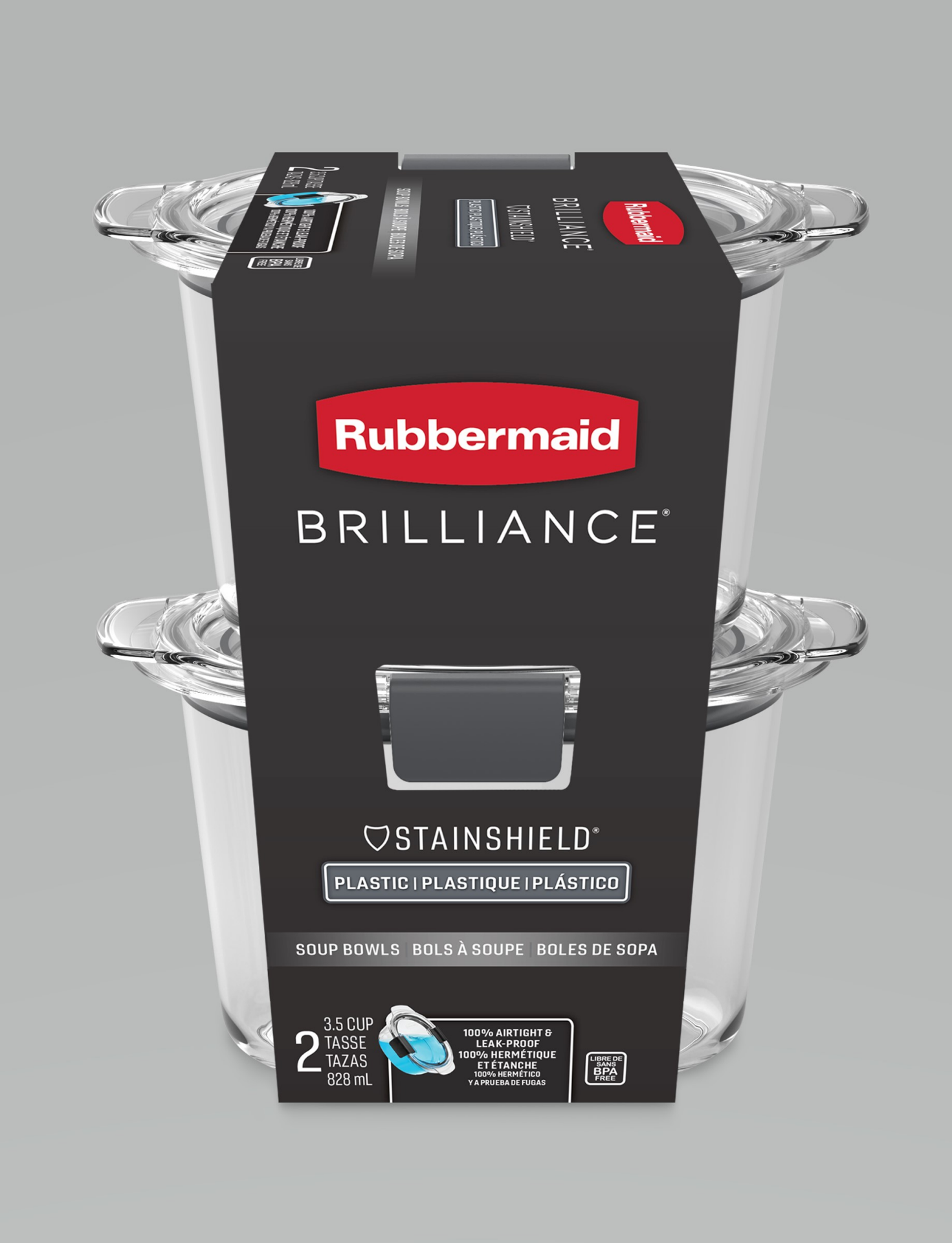 This 2-pack set of Rubbermaid Brilliance® 3.47 cup round containers delivers 4x Protection: It is 100% leak-proof, stain resistant, shatter resistant, and odor resistant. This 4-way protection allows …
