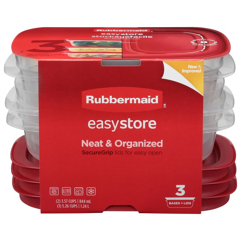 Rubbermaid 3.57-Cup (2) and 5.26-Cup EasyStore Rectangle Containers, 3 Pack, Food Storage Containers, Food Storage Containers with Lids