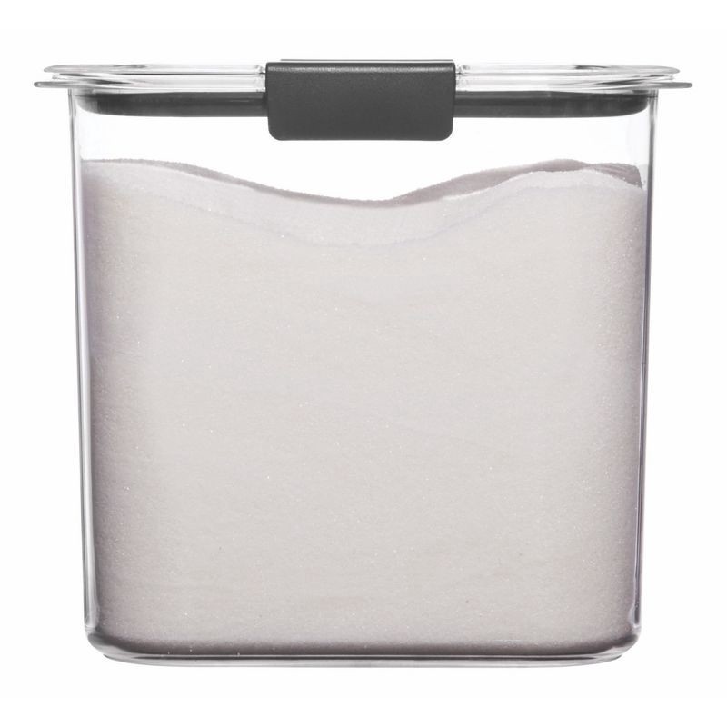 This Rubbermaid Brilliance pantry food storage container is built with tight seals and secure latches to help keep food fresh and prevent spills. The crystal-clear lid and base make it easy to see wha…