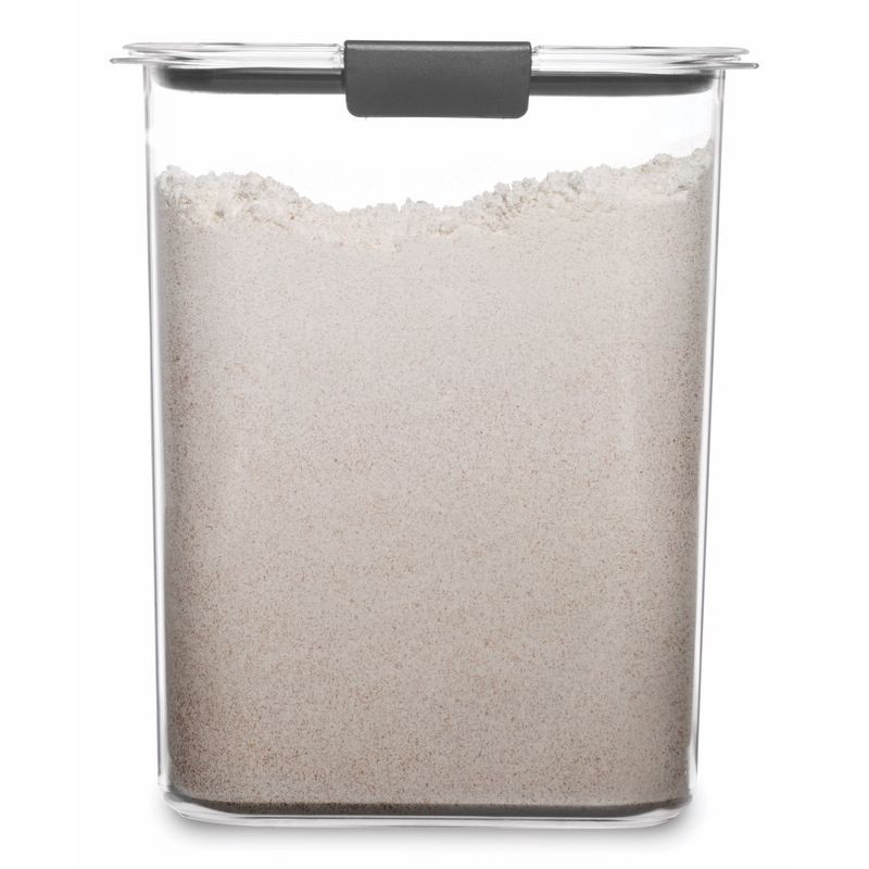 This Rubbermaid Brilliance pantry food storage container is built with tight seals and secure latches to help keep food fresh and prevent spills. The crystal-clear lid and base make it easy to see wha…