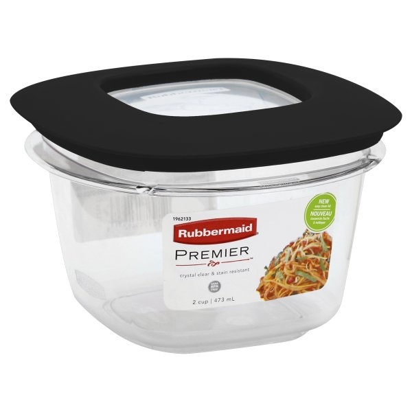473 ml. Crystal clear & stain resistant. BPA free. New easy clean lid. www.rubbermaid.com. Dishwasher safe\, top rack. Microwave safe. Freezer safe. Made in the USA of global components. Made in USA.
