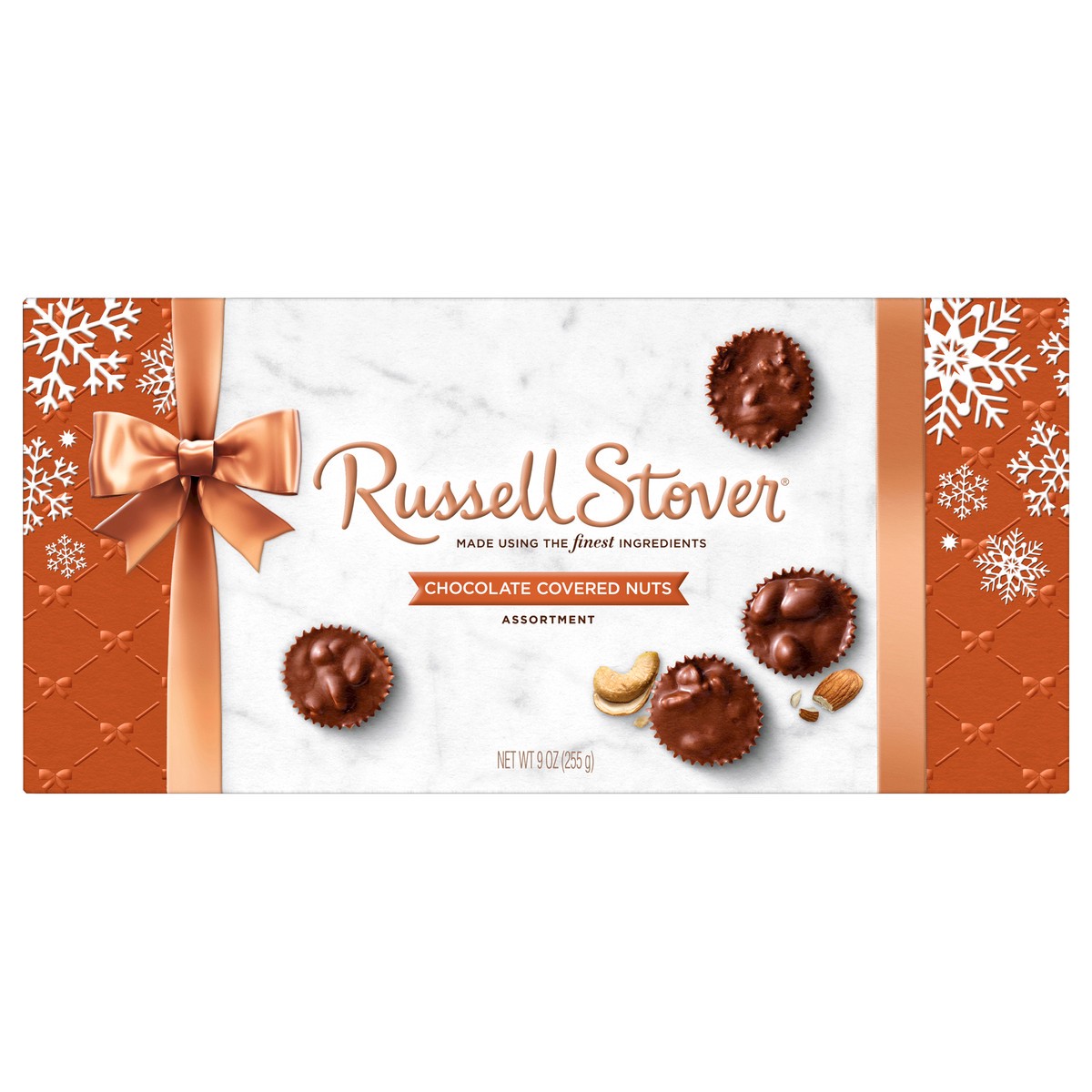 Spread joy this season with our RUSSELL STOVER Christmas Chocolate Covered Nuts Assortment in Milk Chocolate & Dark Chocolate Candy Gift Box, 9 oz. This delicious 18 piece assortment contains 5 nutty …
