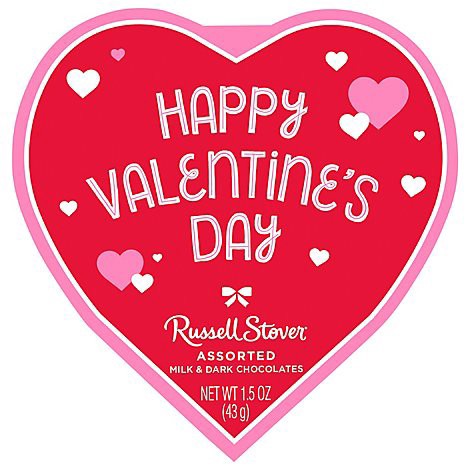 slide 1 of 1, Russell Stover Valentine's Day Happy Heart Day Assorted Milk & Dark Chocolate Gift Box - 1.5 Oz, 1.5 oz
