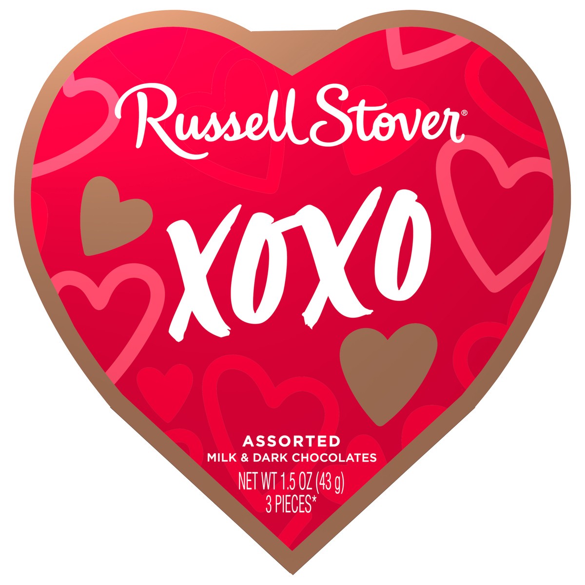 RUSSELL STOVER Valentine's Day Happy Heart Day Assorted Milk Chocolate & Dark Chocolate Gift Box, 1.5 oz., is filled with three (3) of our most delicious bites: milk chocolate caramel, dark chocolate …