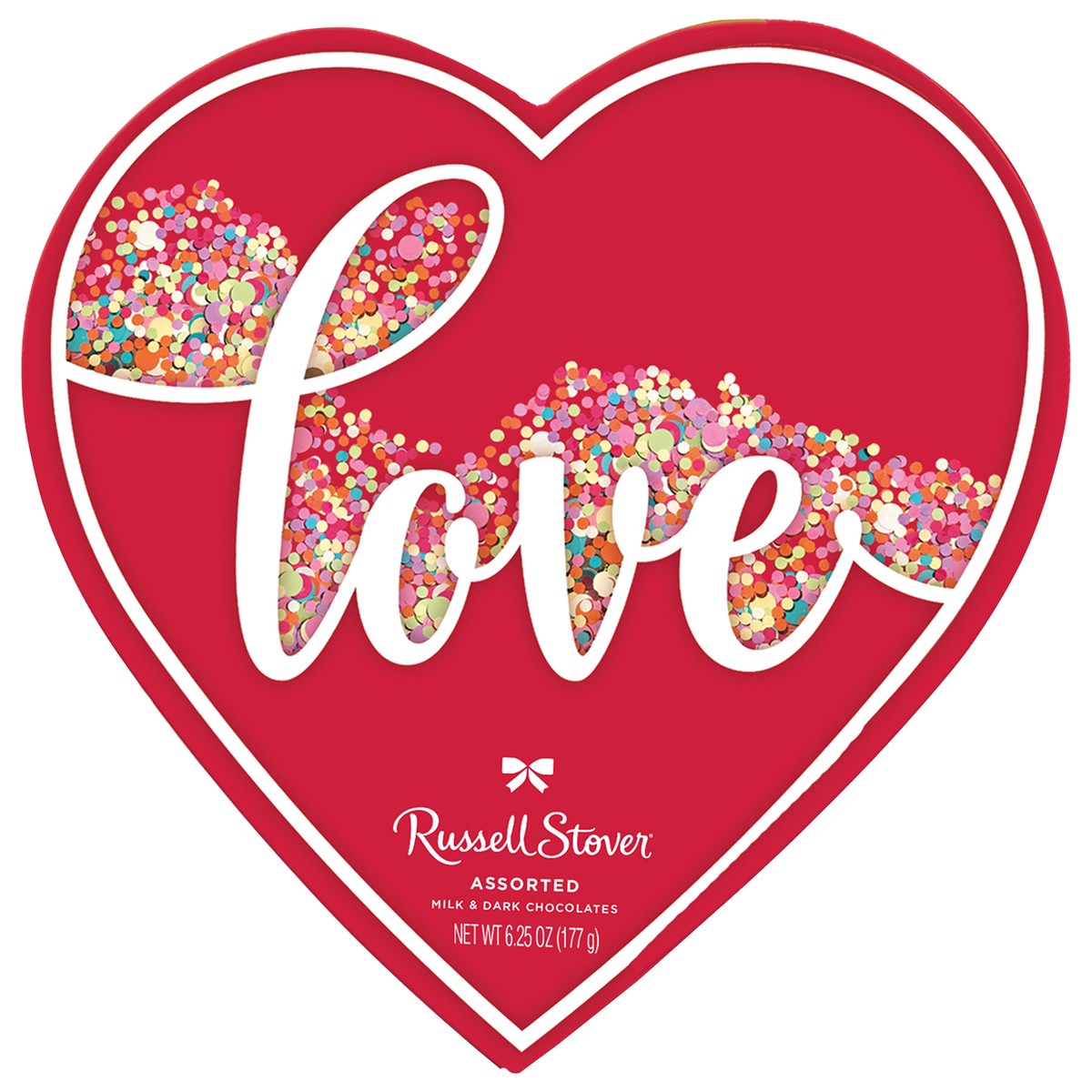 RUSSELL STOVER Valentine's Day Love Confetti Heart Assorted Milk Chocolate & Dark Chocolate Gift Box, 6.25 oz. is a fun 11 piece collection of 8 favorites: milk chocolate caramel, milk chocolate peanu…