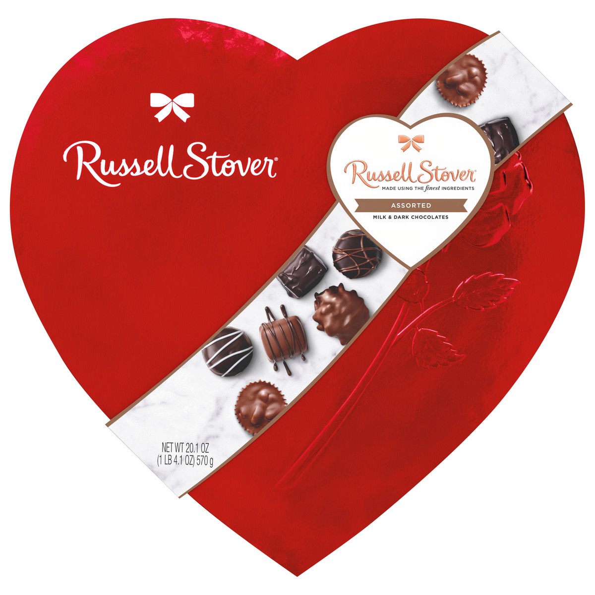 RUSSELL STOVER Valentine's Day Red Foil Heart Assorted Milk Chocolate & Dark Chocolate Gift Box, 20.1 oz., is the perfect way to express your love this Valentine's Day! This 35 piece collection of 12 …