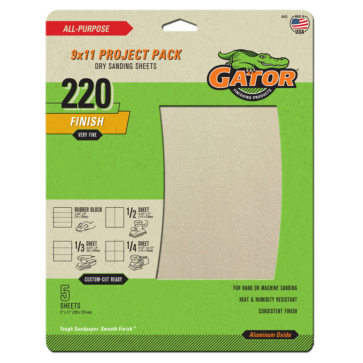 slide 5 of 5, Rustoleum Gator 9-Inch x 11-Inch Multi-Surface Sanding Sheets - 4443, 220 Grit, 5 ct