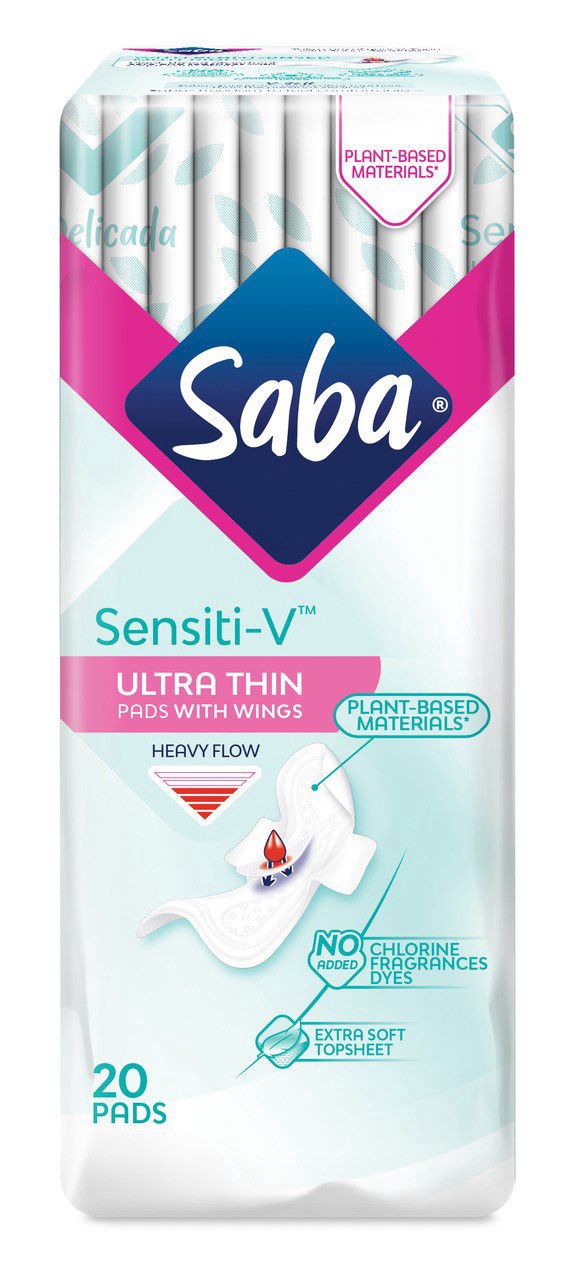 slide 1 of 1, Saba Sensiti-V Pads With Wings Heavy Flow - Ultra Thin, 20 ct