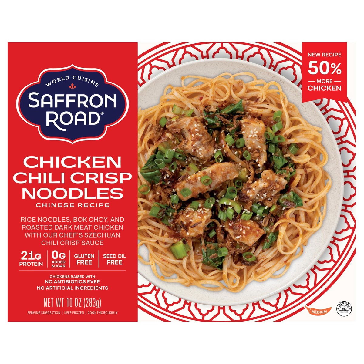 slide 1 of 14, Saffron Road Frozen Chili Crisp Noodles - Seed Oil Free, Chickens Raised with No Antibiotics, No Artificial Ingredients, Gluten Free – 10 oz, 10 oz