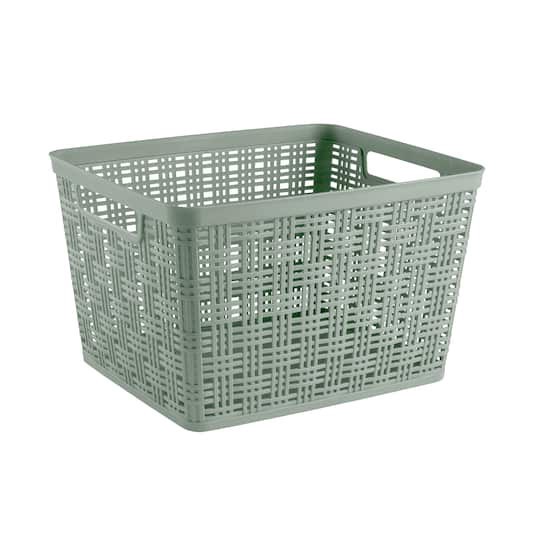 find this Sage Plastic Wicker Storage Basket by Simply Tidy at Michaels. Keep you home or office neat and tidy with this storage basket. The sturdy plastic construction has an open weave design with b…