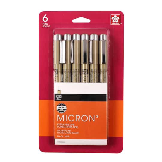Find the Micron 003 Micron Extra Fine Line Pens, 6ct. at Michaels. These archival ink pens are waterproof and chemical and fade resistant. Black. 003 (0.15 mm) pen. 6 pens. Chemical and fade resistant…