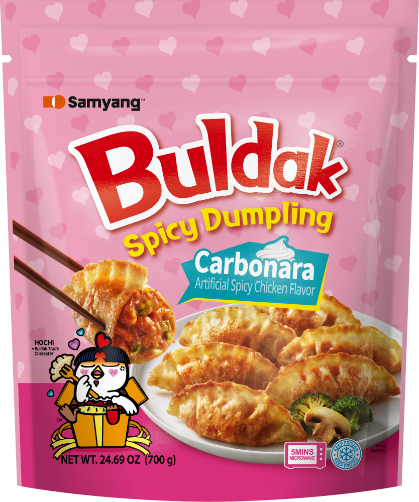 Experience the creamy and indulgent flavors of Samyang's Buldak Giant Dumpling Carbonara! These oversized dumplings are filled with the rich and creamy carbonara sauce, infused with the signature spic…