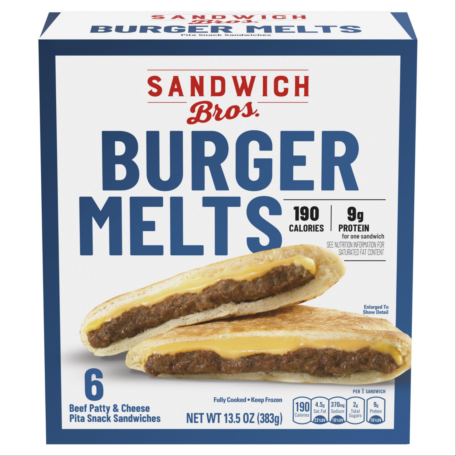 Sandwich Bros. Sandwich Bros Angus Beef Patty Cheeseburger, Frozen Pita Pocket Sandwiches, Frozen Meal, 6 Count, 13.5 oz