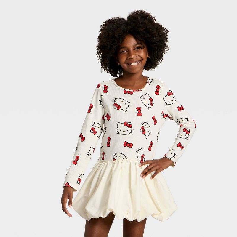 Sanrio Girls' Hello Kitty Ribbed Drop Waist Dress - Cream L
