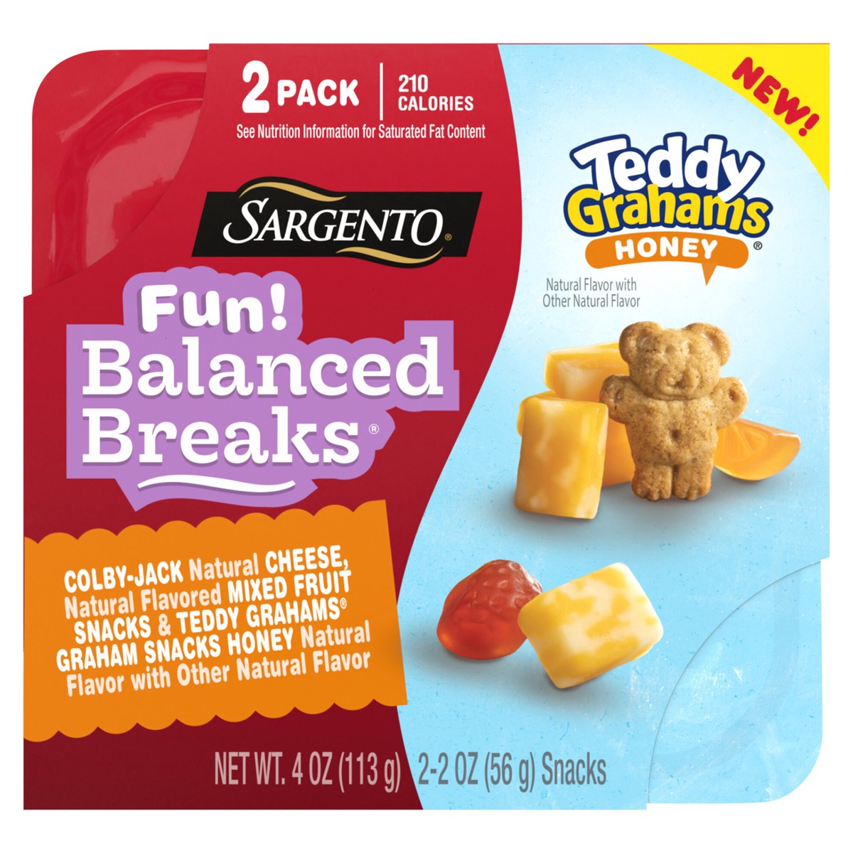 Looking for a snack kit that''s a little more playful? Try Sargento Fun! Balanced Breaks Colby-Jack Natural Cheese, Naturally Flavored Mixed Fruit Snacks & TEDDY GRAHAMS Graham Snacks Honey snack kits…