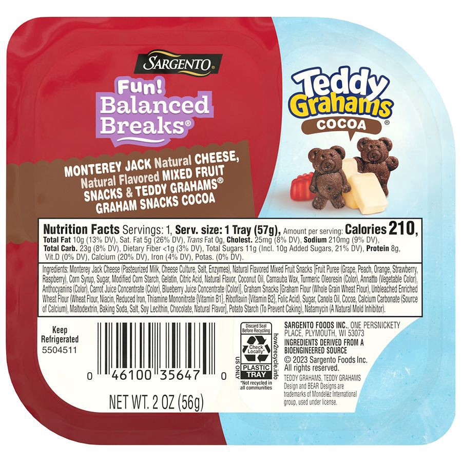Put the yum and the fun back into snack time. Combining Sargento cheese with chewy mixed fruit flavored snacks and cocoa TEDDY GRAHAMS, this yummy combination is perfect for mixing, matching and enjoy…