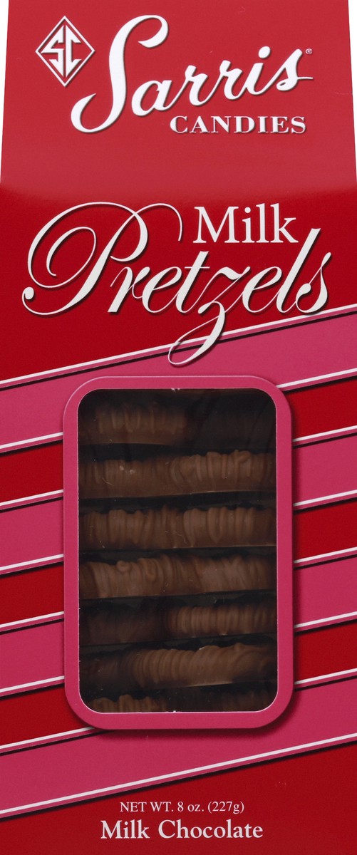 Milk chocolate covered pretzels. www.sarriscandies.com. Facebook: Join us at www.facebook.com/sarriscandies. Our pretzels are covered in ribbons of the finest chocolate made from the highest quality i…