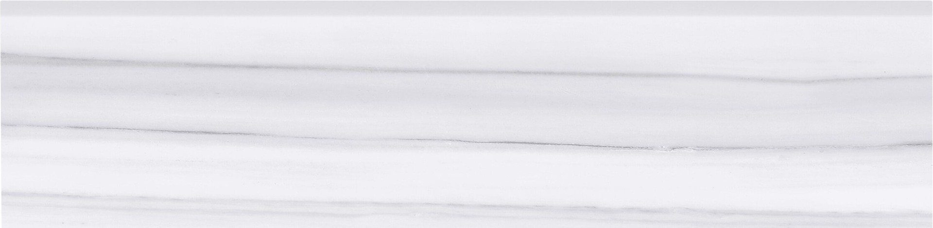 The elegance of marble with the durability and low maintenance of porcelain. This polished porcelain bullnose tile has a rectified edge treatment, perfect for thinner grout lines and a more seamless l…