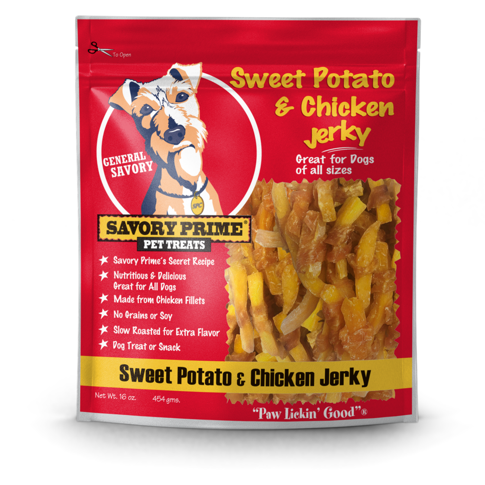slide 1 of 1, Savory Prime Sweet Potato And Chicken Jerky, 16 oz