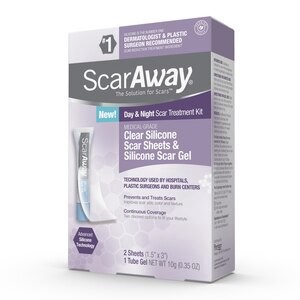 ScarAway Clear Medical-Grade Silicone Scar Sheets and 100 Percent Medical-Grade Silicone Scar Gel helps fade the appearance of hypertrophic and keloid scars with two discreet options that fit your lif…